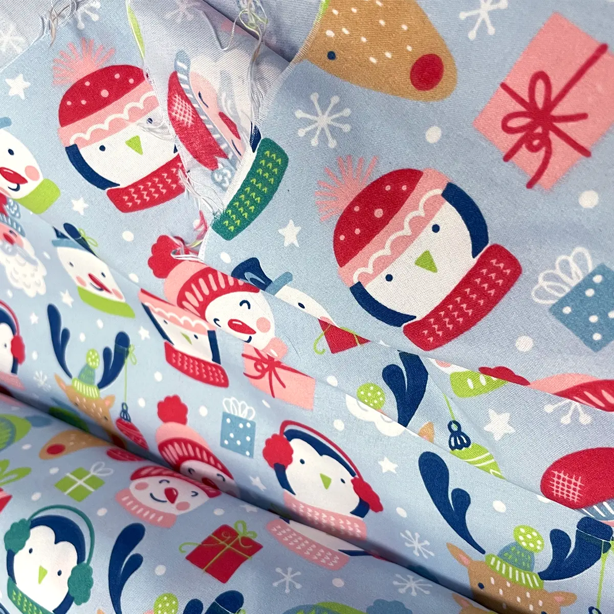 La Tela Algodón Candy Navideño “Fiesta Polar de Amigos” inspira ternura y diversión con un estampado de pingüinos, renos, Santa y muñecos de nieve en tonos invernales. Es ligera, fácil de coser y perfecta para emprendimientos, envoltorios textiles y confecciones sencillas.