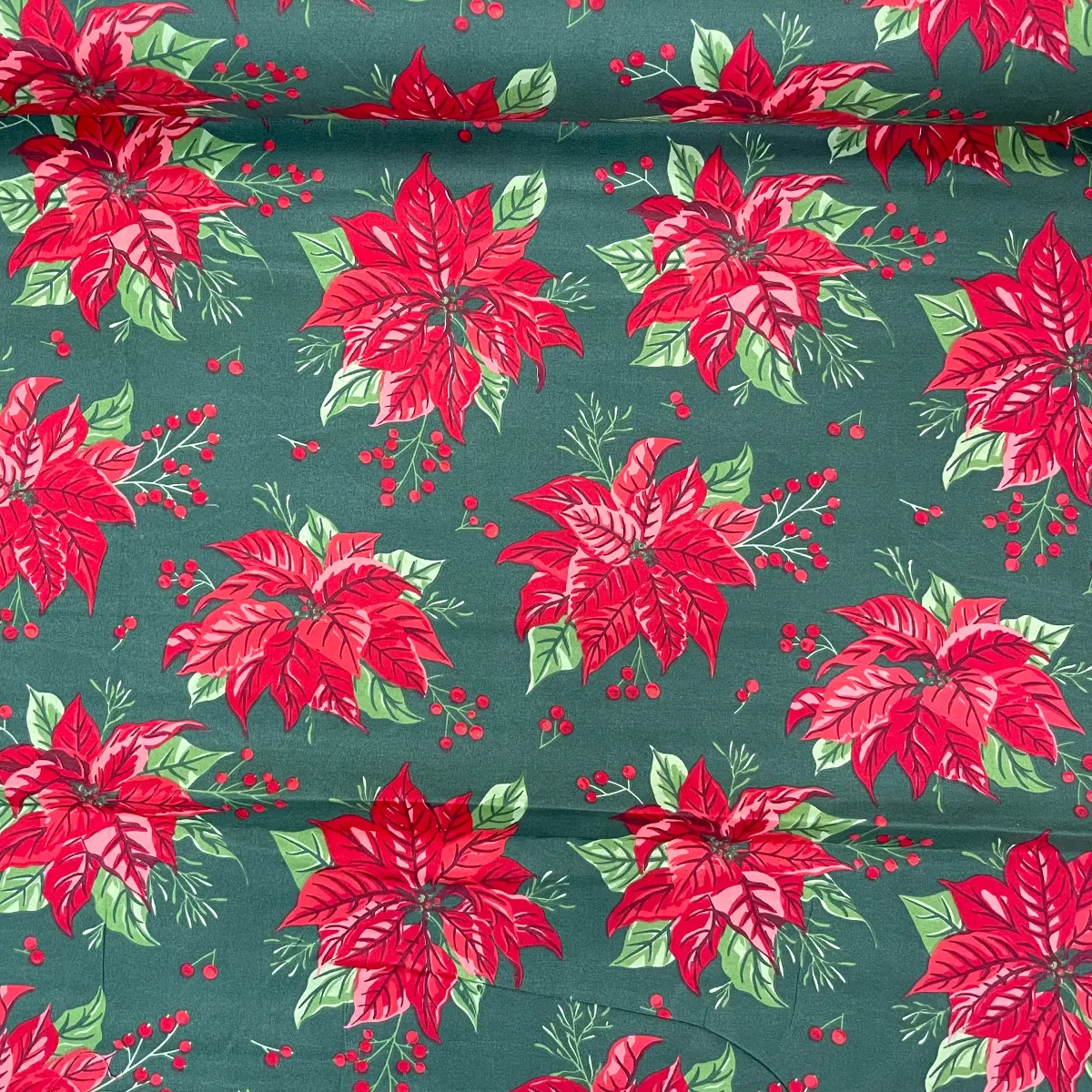 La Tela Algodón Candy Navideño “Flores de la Nochebuena” celebra la esencia clásica de la Navidad con un estampado lleno de color, tradición y calidez. Su diseño de nochebuenas vibrantes sobre un fondo verde profundo la convierte en una opción perfecta para quienes buscan crear productos personalizados, series especiales para venta o detalles decorativos que transmitan el espíritu navideño.