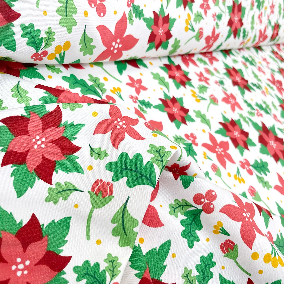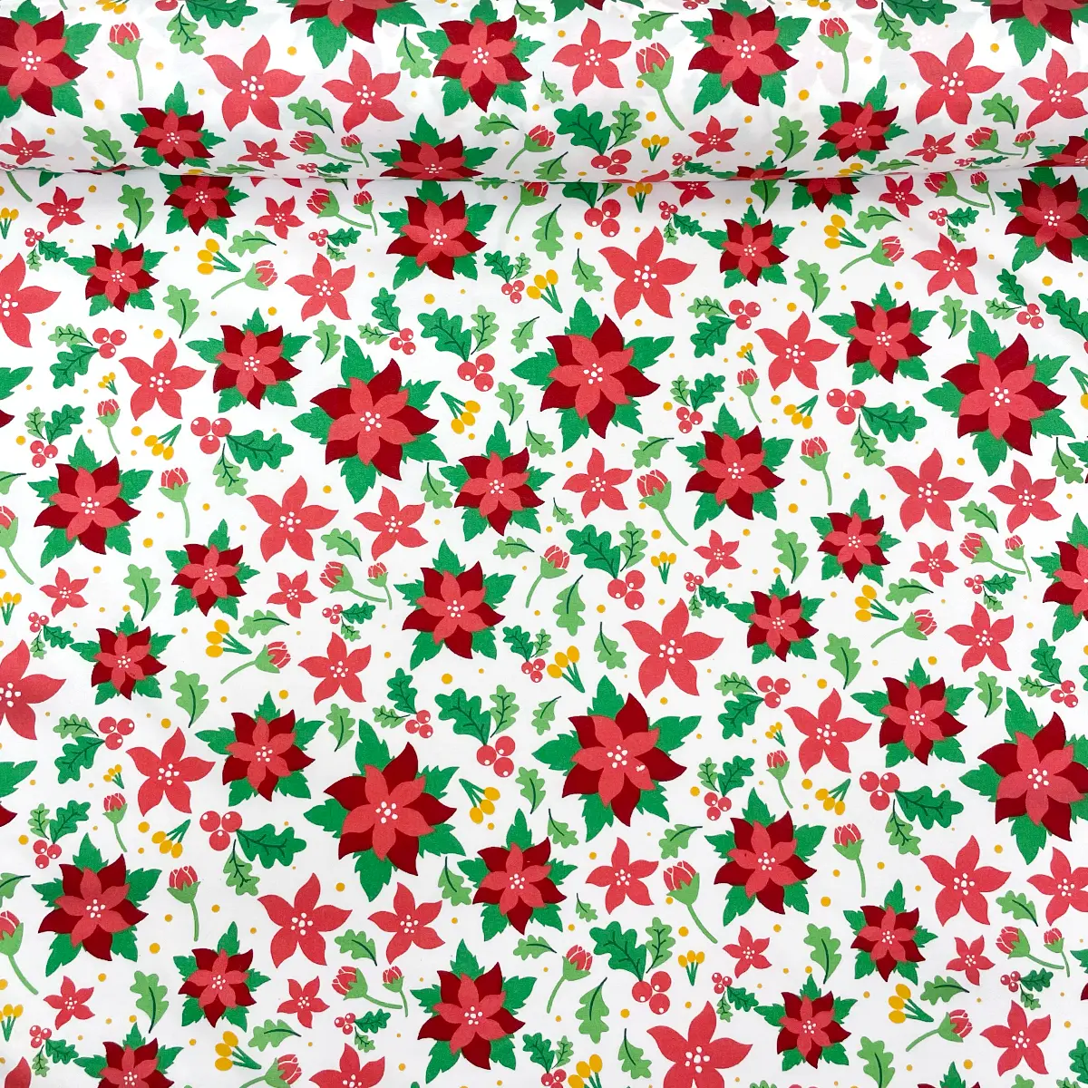 La Tela Algodón Candy Navideño «Jardín de Nochebuenas» 120 cm ancho, Ideal para Crear Manualidades Y Usarla para Pijamas o Cojines – Precio Por Metro es la tela perfecta para añadir un toque floral y festivo a tu hogar. Su composición Algodón Candy 100% poliéster la hace ideal para manualidades, pijamas y cojines con la suavidad que buscas. Adquiere por Precio Por Metro esta tela y comienza a tejer la magia de la Navidad en cada creación.
