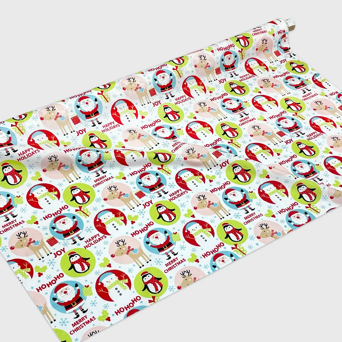 Tela Algodón Candy Navideño «Personajes del Polo Norte» 120 cm ancho, Perfecto para Bolsas de Regalo y Adornos para Niños – Rollo 30 m