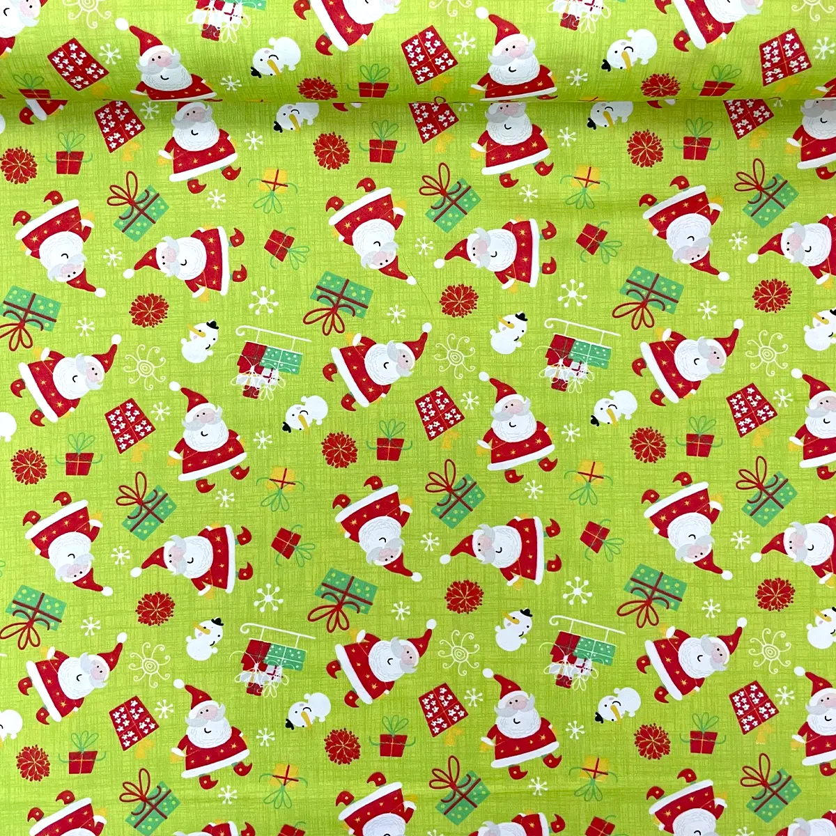 La Tela Algodón Candy Navideño “Santa Trajo Regalos” invita a crear piezas llenas de alegría navideña gracias a su estampado vibrante de Santas, regalos y motivos festivos sobre un fondo verde chispeante. Su ligereza, suavidad y facilidad de manejo la convierten en una excelente aliada para proyectos creativos, personalizados o con fines de emprendimiento. Desde envoltorios textiles hasta accesorios decorativos, esta tela permite desarrollar ideas originales con un toque festivo.