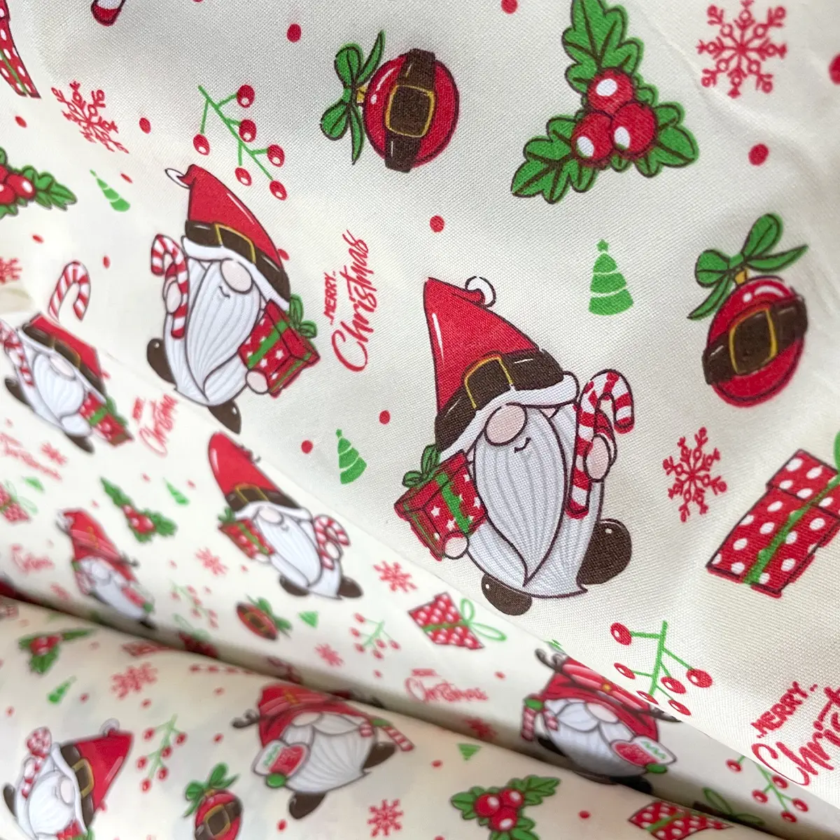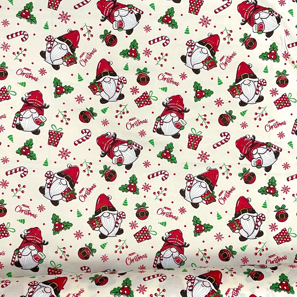 Déjate envolver por la calidez y ternura de la Tela Algodón Candy Navideño “Sueños de Gnomos de Invierno”, un estampado lleno de encanto con simpáticos gnomos, copos de nieve y elementos invernales que evocan la paz y la magia de la temporada.