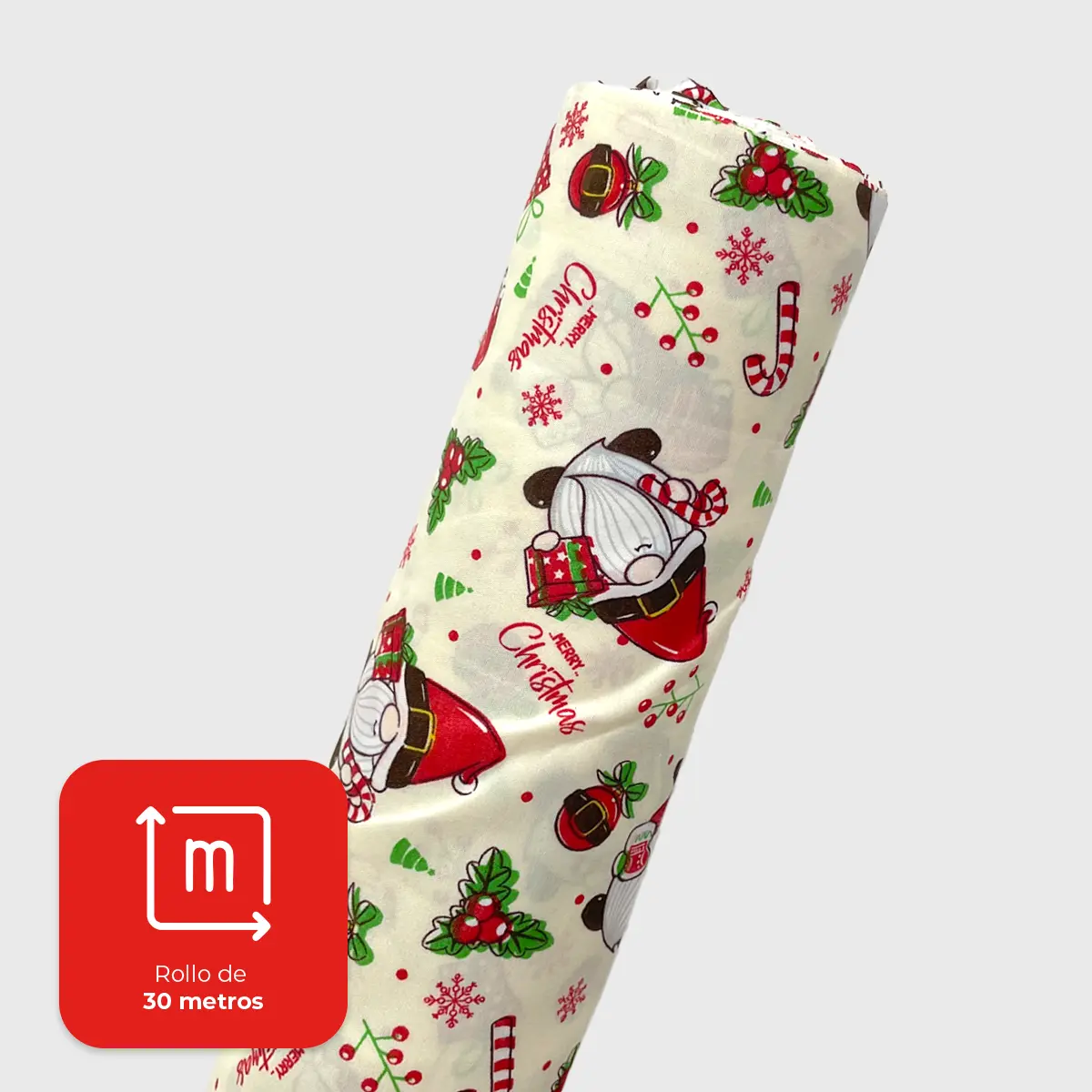 Con un ancho de 120 cm y disponible por rollo de 30 m, es una opción perfecta para costureros, talleres de confección o amantes del diseño navideño que buscan materiales versátiles y llenos de vida.