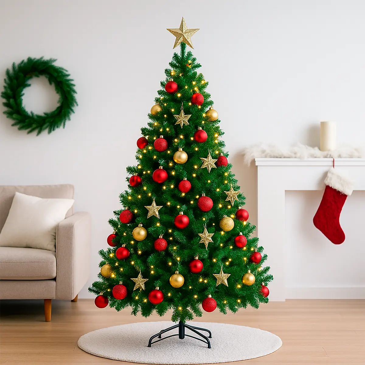 Este árbol de Navidad artificial verde de 180 cm es la elección perfecta para crear un ambiente festivo y acogedor. Con 600 puntas de alta densidad, este árbol proporciona un aspecto natural y frondoso, ideal para decorar con luces, esferas, y guirnaldas, realzando la belleza de cada adorno.