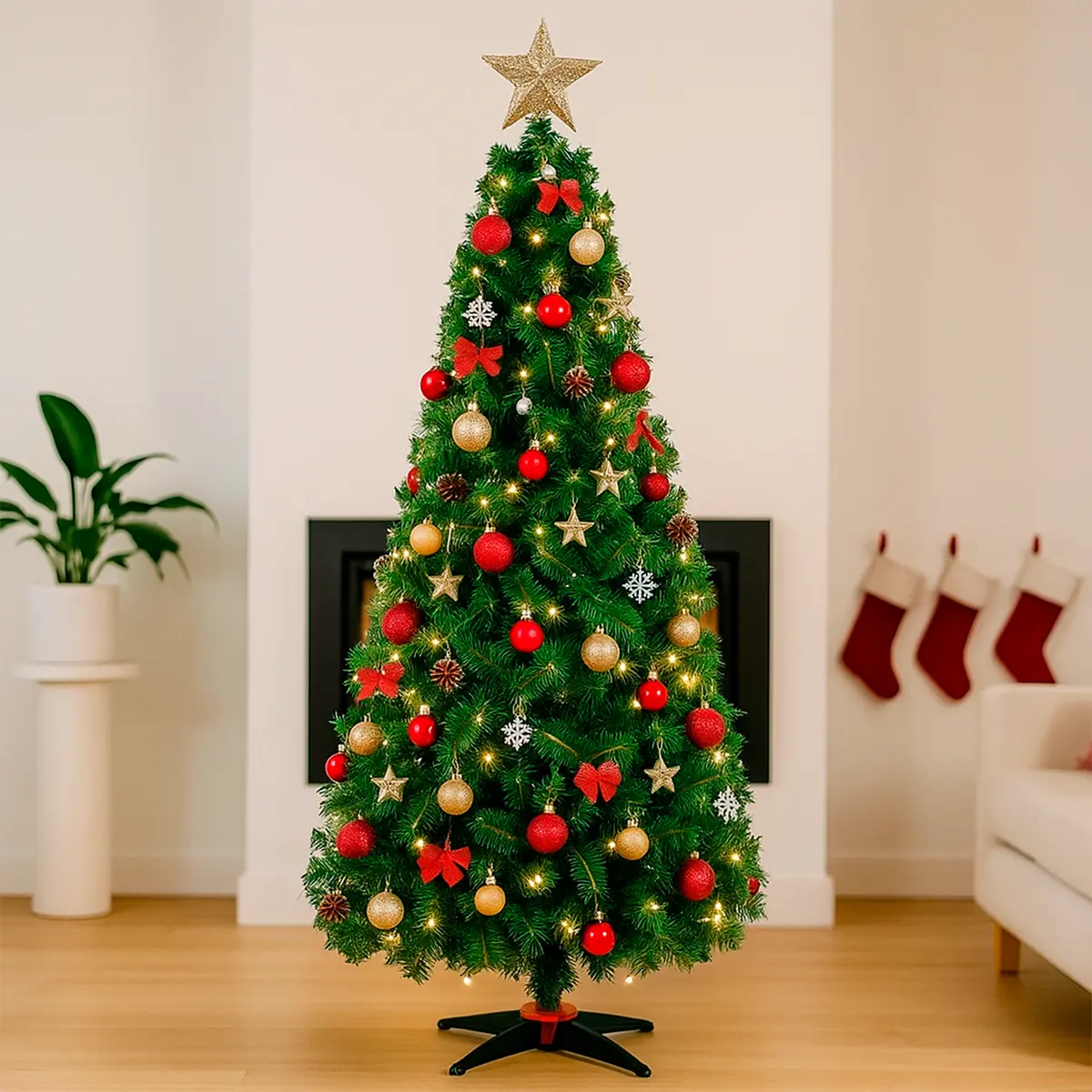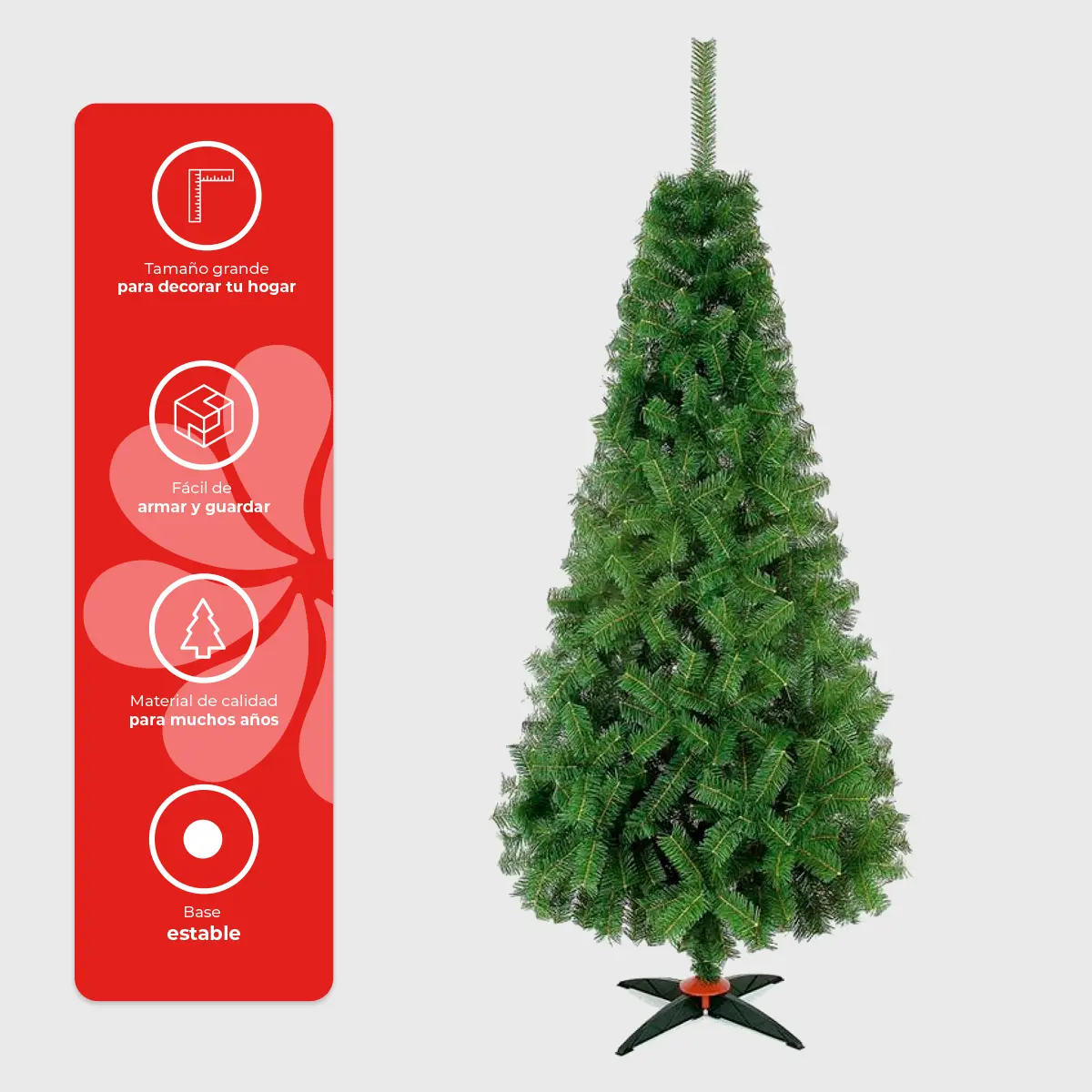 Su diseño alto y frondoso permite una decoración completa con esferas, luces y guirnaldas, creando el punto central perfecto para tu sala o espacio familiar. Además, su estructura firme y estable facilita el montaje, mientras que su material de alta calidad garantiza que puedas disfrutarlo por muchas Navidades.