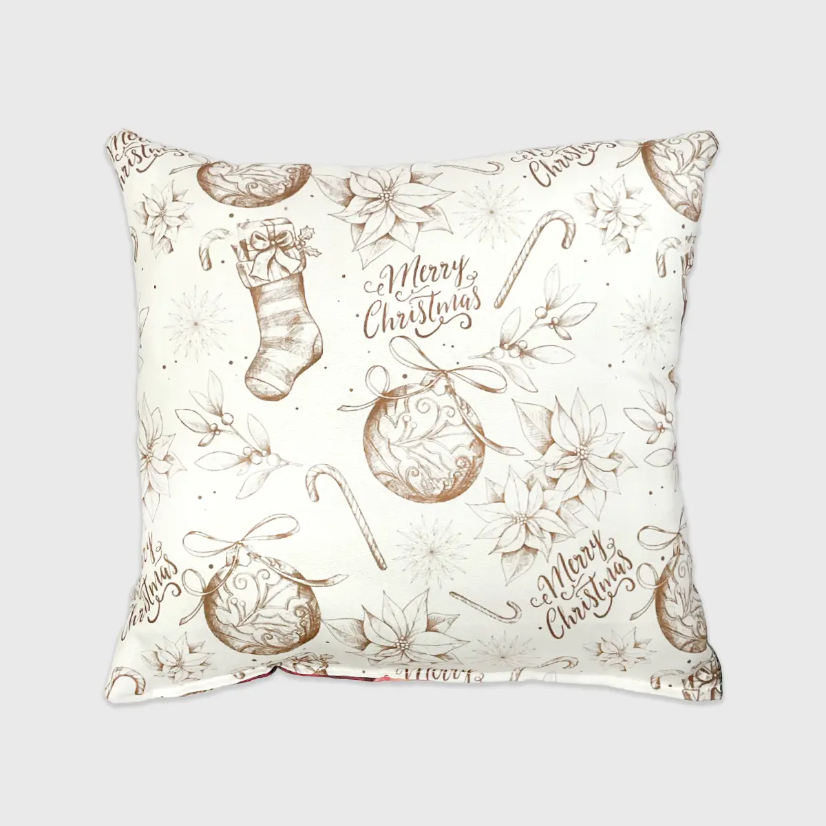 Haz brillar tu hogar esta temporada con el Paquete de 2 Cojines Navideños “Brillo del Árbol”, una pieza que captura la esencia de la Navidad con su hermoso diseño de pino decorado con esferas doradas, cintas y flores de nochebuena. Su fondo claro aporta un aire luminoso, elegante y acogedor que transforma cualquier espacio en un ambiente festivo.
