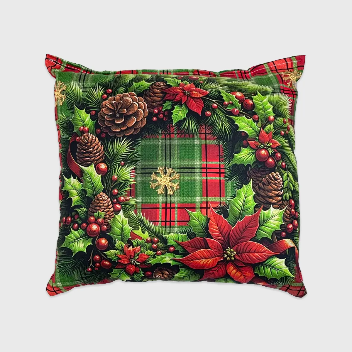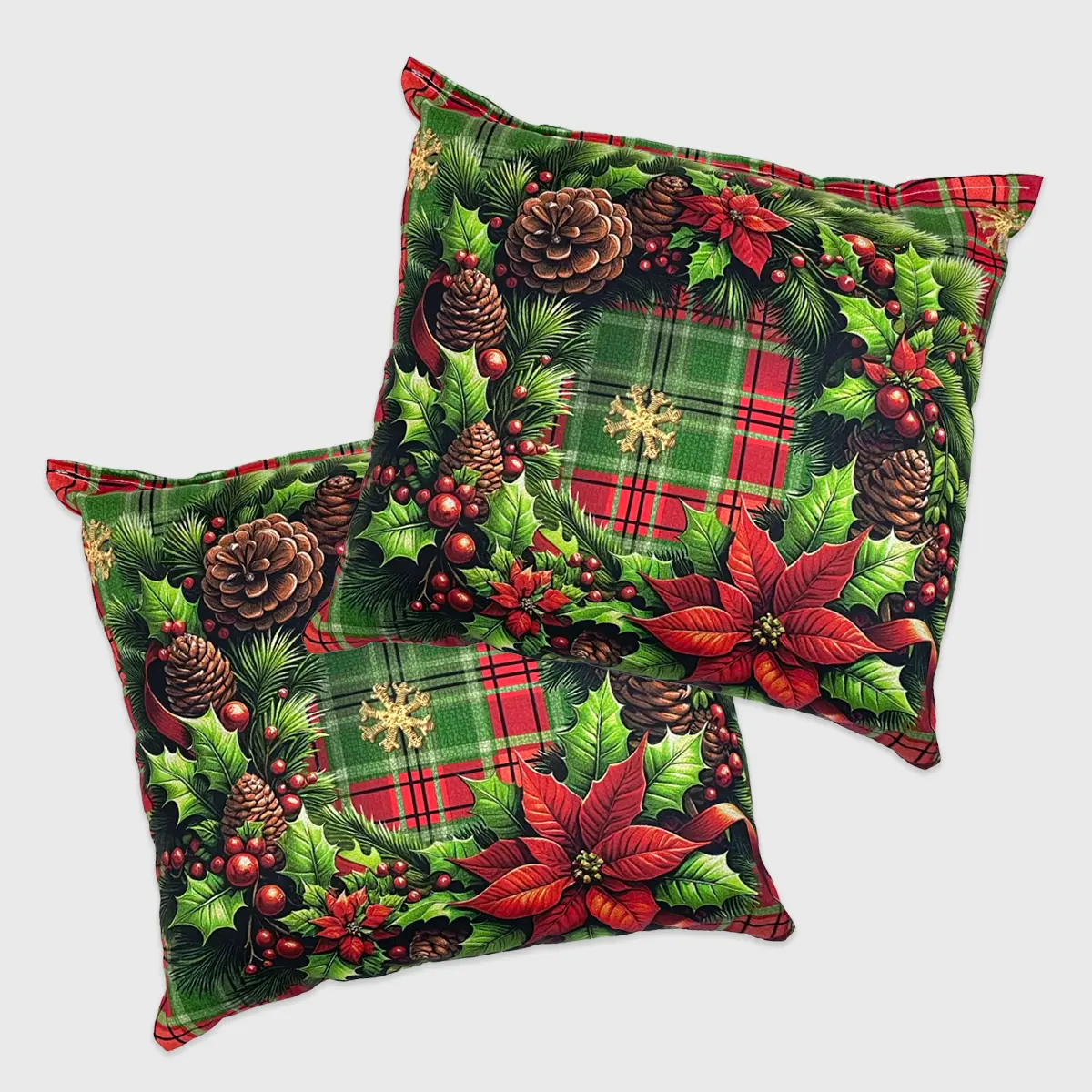 Transforma tu sala en un refugio lleno de calidez con el Paquete de 2 Cojines Navideños “Corona de Esperanzas”. Un diseño que simboliza unión, tradición y alegría en cada detalle.