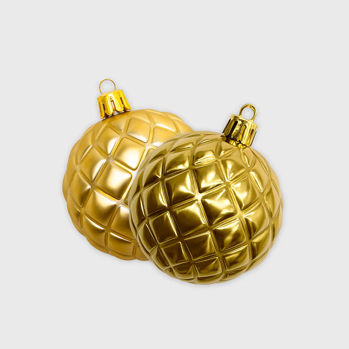 Fabricadas en plástico ligero y resistente, son ideales para adornar árboles de Navidad, coronas, guirnaldas o centros de mesa sin preocuparte por caídas o golpes. Su color dorado metálico combina fácilmente con otros tonos como rojo, blanco o verde, adaptándose a cualquier estilo de decoración navideña.