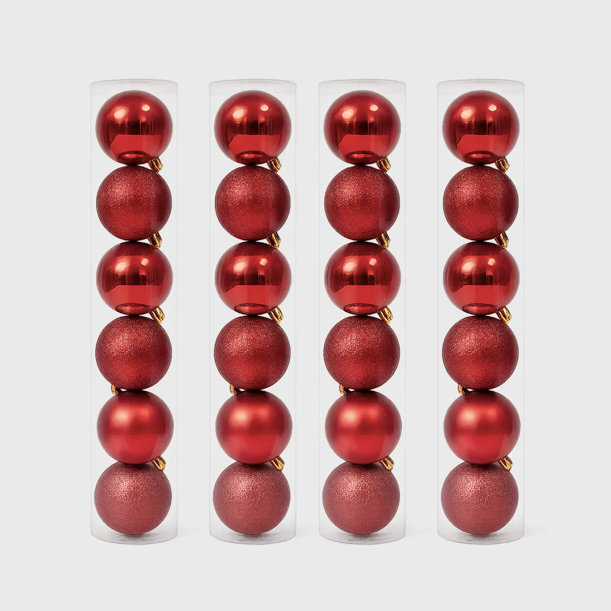 Haz que tu hogar se llene de alegría con el Paquete de 24 Esferas Navideñas Rojas de Plástico, el toque clásico que nunca pasa de moda.