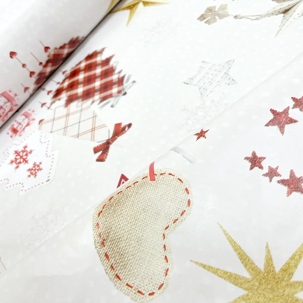 • Estampado: Diseño elegante de «Blanca Navidad», en tonos invernales que aportan un toque sofisticado y minimalista.