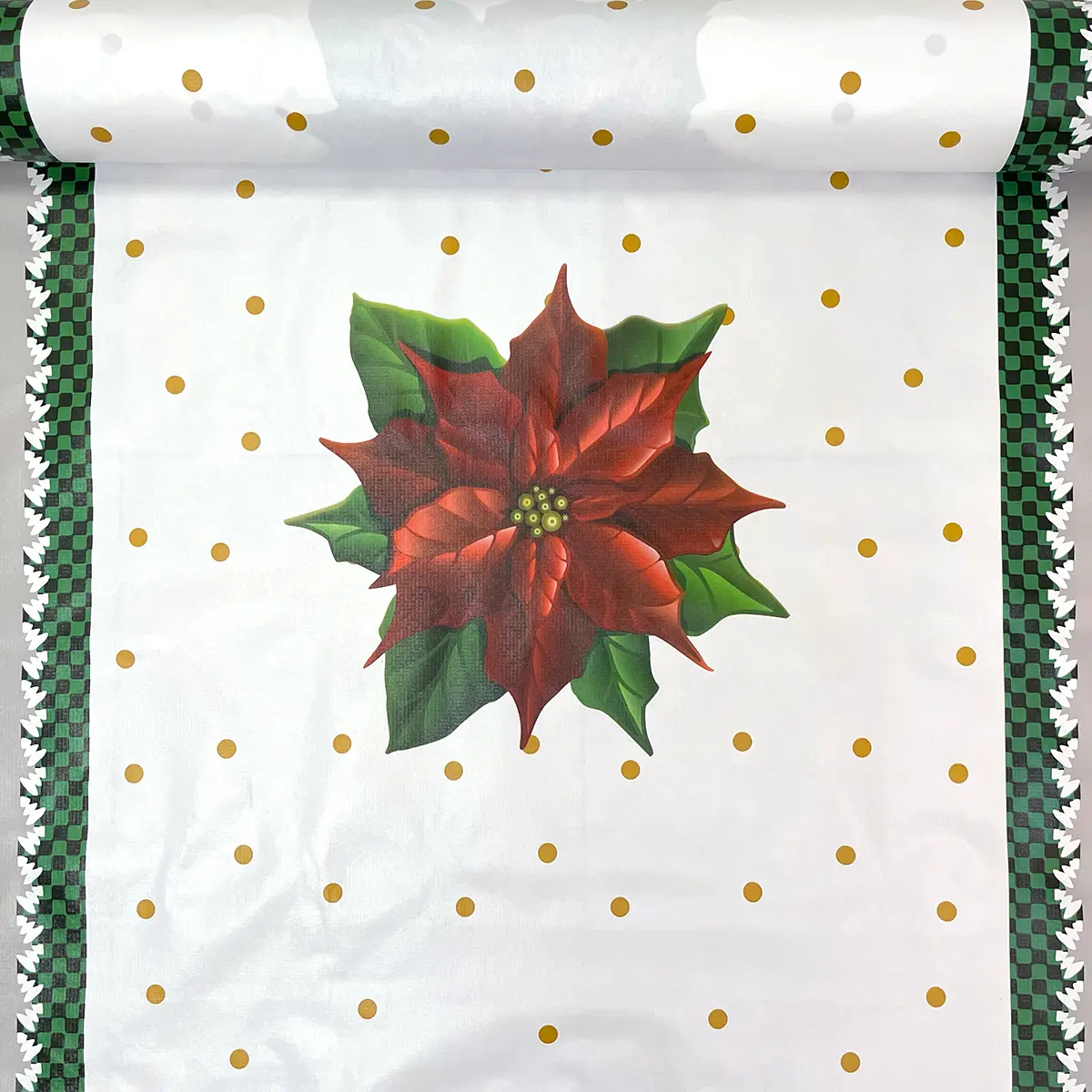 El formato de Rollo de 30 m del Mantel Navideño Campanas de Nochebuena y su ancho de 137 cm lo convierten en una opción inmejorable para organizadores de eventos, grandes familias o negocios de hostelería que celebran múltiples banquetes durante la temporada. El rollo asegura que tendrás material suficiente para cubrir mesas de diferentes tamaños o para reemplazar tramos dañados. Su composición plástica con una textura delicada lo hace totalmente impermeable. Olvídate de la lavandería pesada; con este Mantel Navideño Campanas de Nochebuena, una simple pasada con un paño es suficiente para mantener la pulcritud de la fiesta.