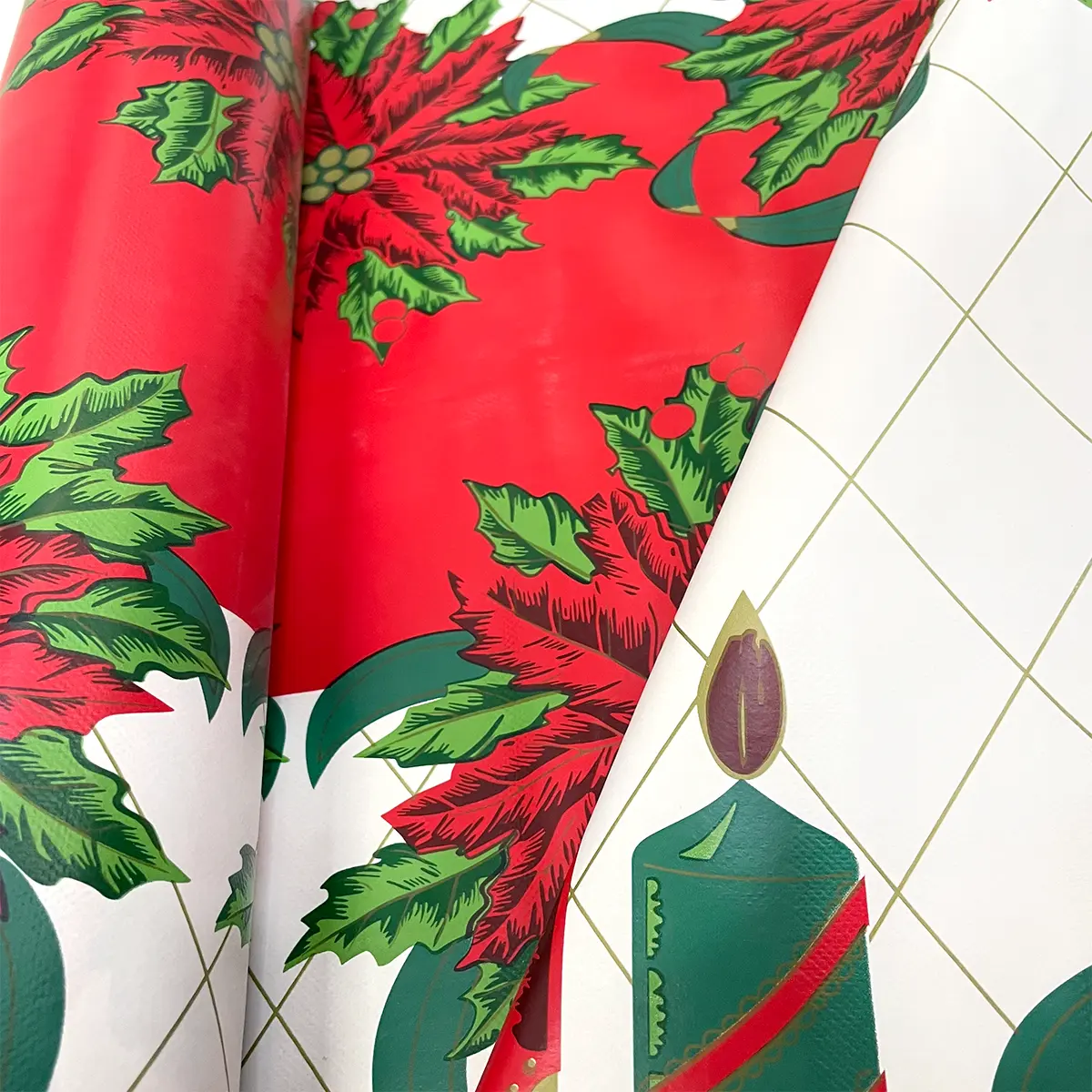 El formato de Rollo de 25 m del Mantel Navideño Flor de Pascua y su ancho de 137 cm son ideales para usos de alto volumen, como eventos, banquetes corporativos o para mantener una decoración uniforme en todas las mesas de un gran hogar. El rollo te permite cortar la longitud exacta que necesites para cada mesa, minimizando el desperdicio. La gran ventaja de su composición de plástico no PVC es que es totalmente impermeable y a prueba de manchas. Esto hace que la limpieza sea excepcionalmente sencilla, permitiéndote disfrutar de la temporada sin el tedioso trabajo de la lavandería.