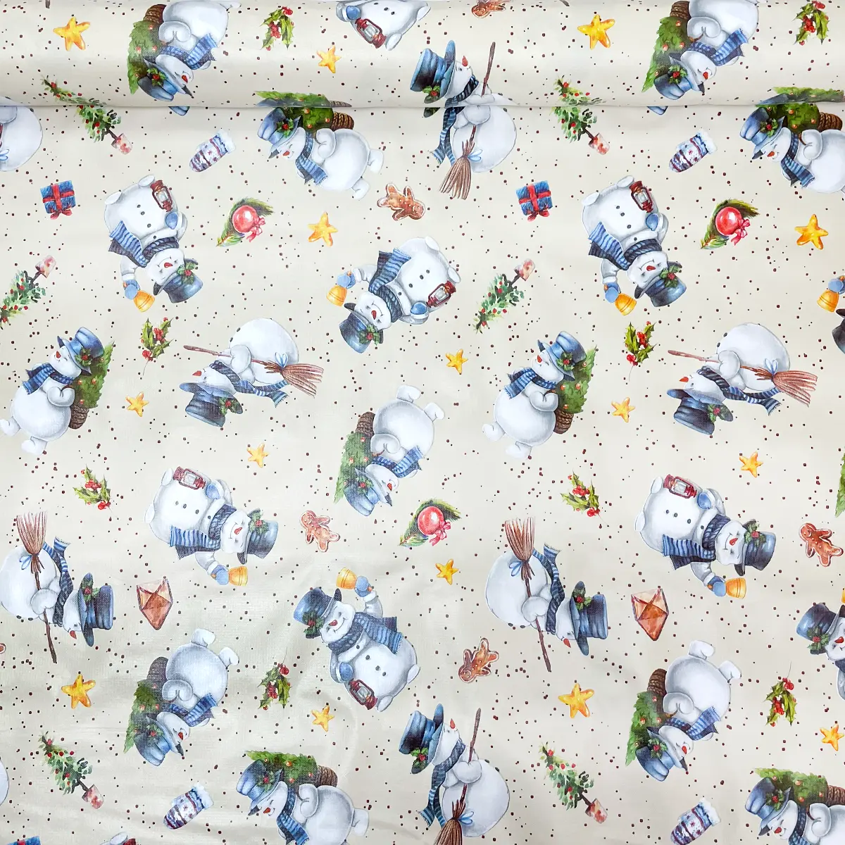 El Mantel Hermoso Navideño «Muñecos de Nieve Festivos» 137 cm – Precio por Metro es la opción más práctica de Modatelas para una decoración festiva y sin preocupaciones. Su material plástico es 100 % impermeable y fácil de limpiar, y su diseño de Muñecos de Nieve Festivos irradia alegría.