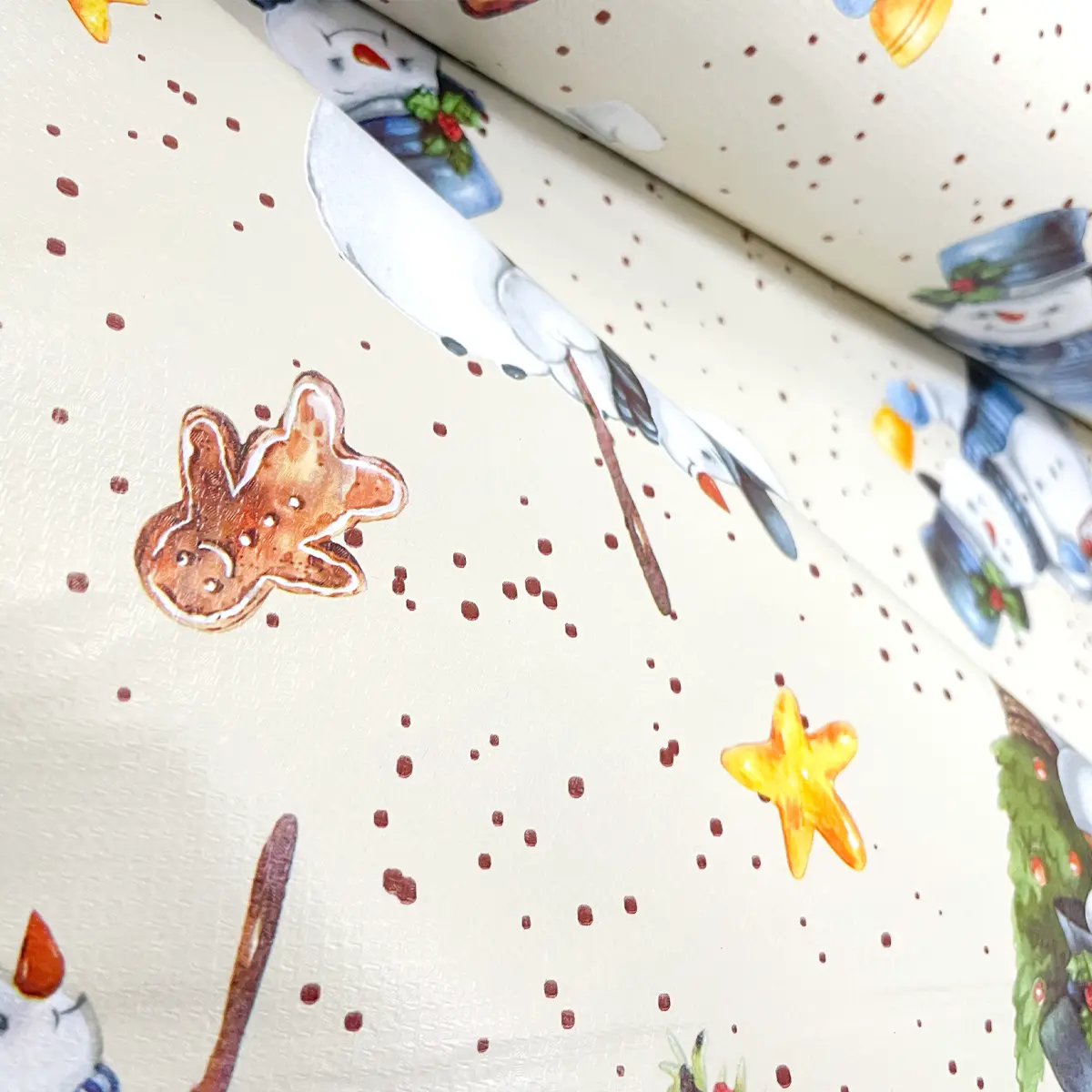 Decora tu mesa con alegría y protégela de derrames de forma instantánea usando el Mantel Hermoso Navideño «Muñecos de Nieve Festivos». Este mantel de 137 cm de ancho, que se vende por metro, es ideal para cubrir mesas en el hogar o en fiestas navideñas gracias a su composición plástica que permite una limpieza con solo un paño, sin perder una textura delicada al tacto.