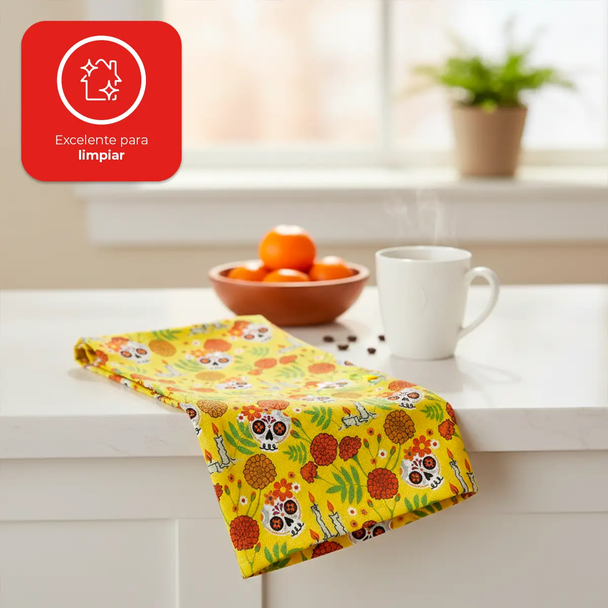 Al ser un rollo de 30 metros, ofrece una excelente relación costo-beneficio. Se puede cortar a la medida exacta que se requiera, minimizando el desperdicio. Es un material anti-rayaduras y no suelta pelusa, siendo seguro para limpiar superficies delicadas como pantallas, lentes o acabados de alto brillo. El vibrante estampado de calaveras sonrientes está fijado de manera duradera, resistiendo múltiples lavadas sin perder su color ni su alegre diseño. La microfibra es también de secado rápido, lo que ayuda a prevenir la proliferación de bacterias.