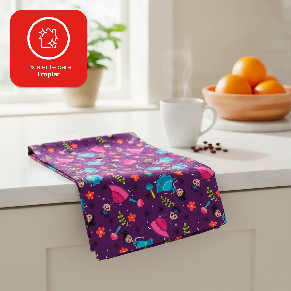 El tamaño del paño (40 cm de ancho por 30 metros de largo) maximiza su utilidad. Puedes cortar paños grandes para desempolvar cómodas y mesas, o paños pequeños para pulir objetos de colección. Su diseño de Catrinas no solo es hermoso sino duradero, ya que el estampado resiste el uso constante y los lavados. Este material es hipoalergénico y de secado rápido, previniendo la acumulación de humedad. Gracias a su composición, es el material ideal para el cuidado de objetos del hogar delicados.