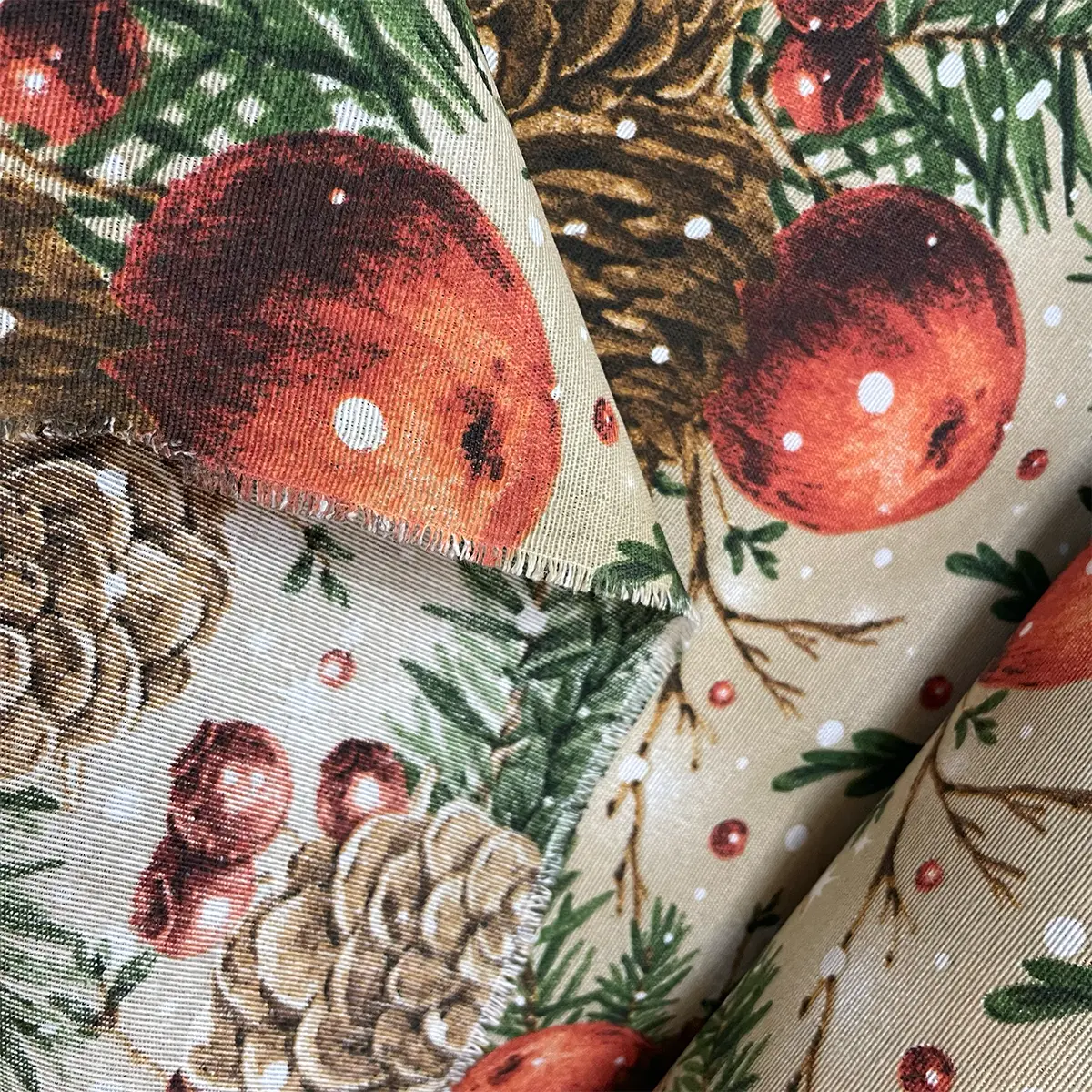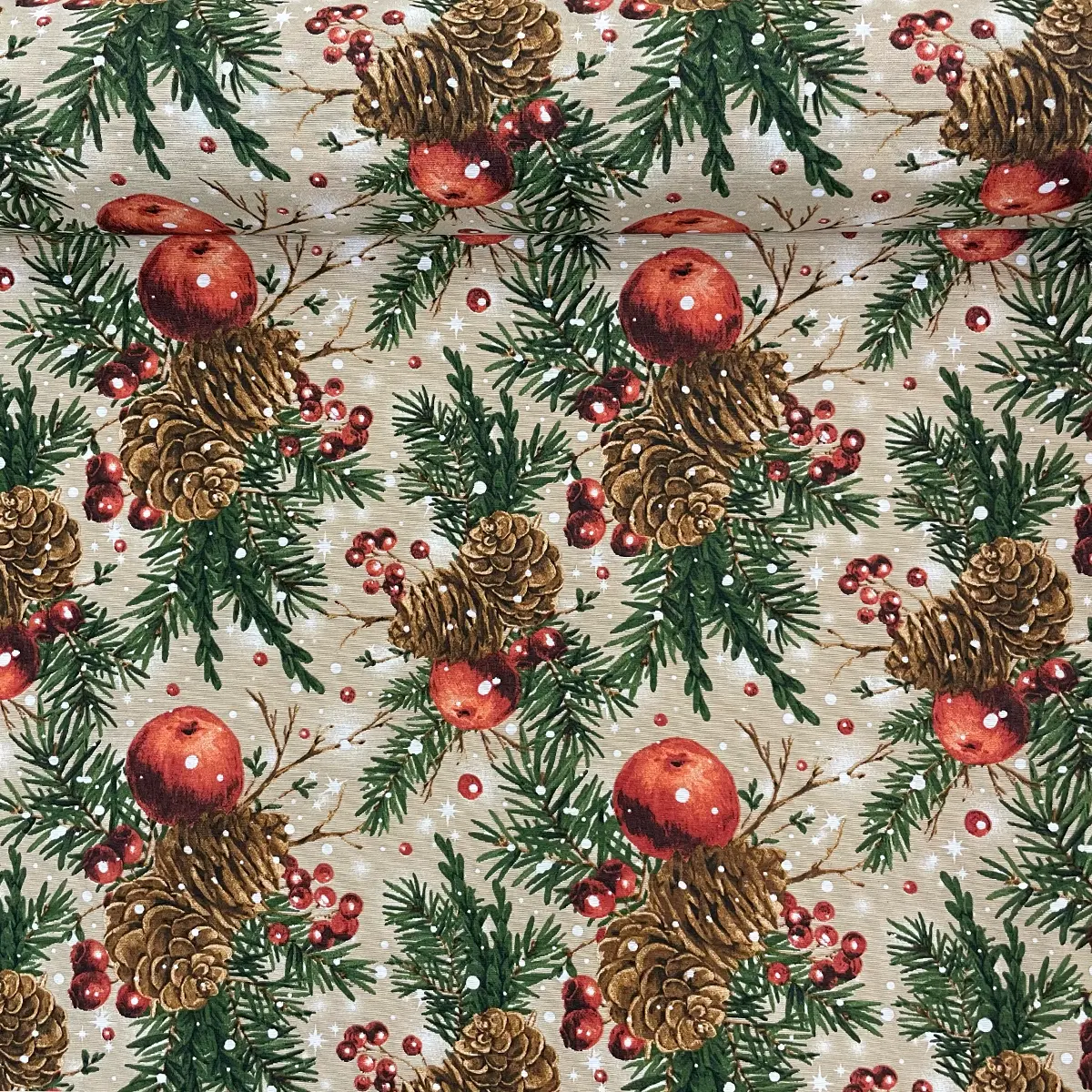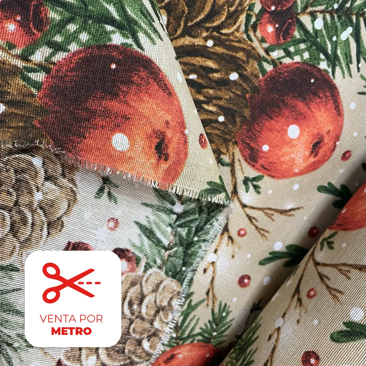Tela Loneta Navideña «Bosque Piñas Silvestres» 140 cm ancho – Precio por Metro