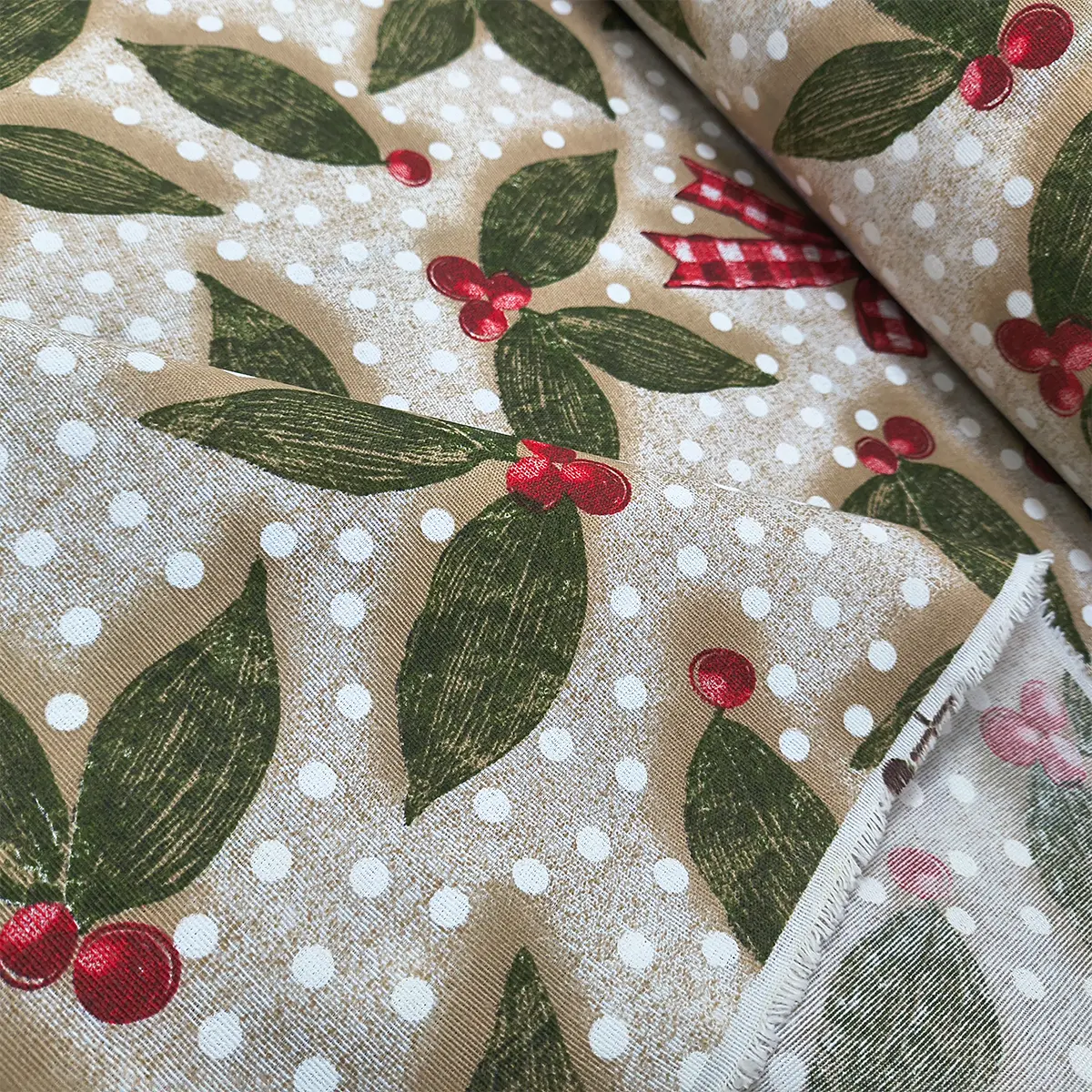 para una Navidad llena de luz y alegría. Su composición duradera y su vibrante diseño hacen de ella el material perfecto para mantelería, cojinería y cortinas. No busques más: esta Tela Loneta Navideña Brillo de Papá Noel es todo lo que necesitas para que tu hogar deslumbre en esta temporada.