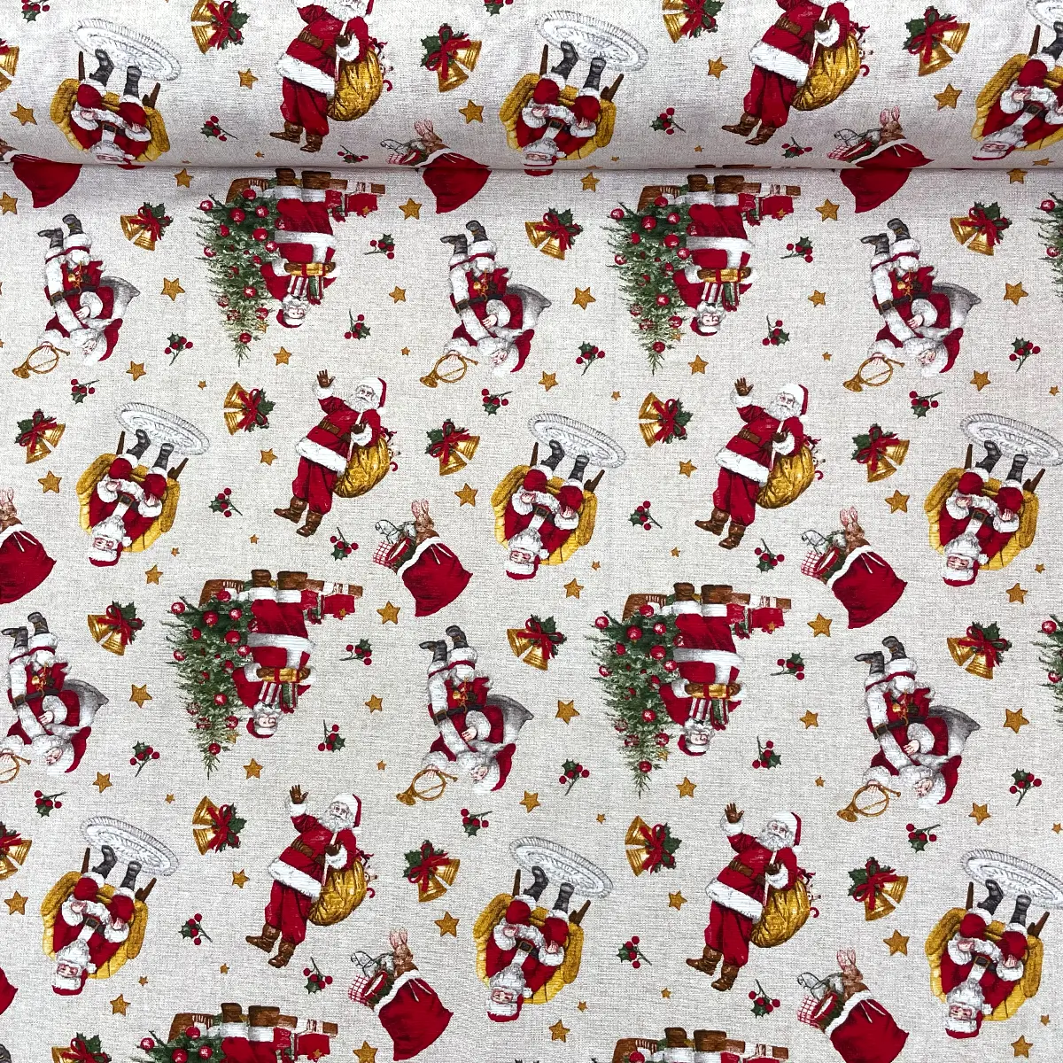 La Tela Loneta Navideña «El Sonido de la Navidad» 140 cm ancho – Ideal para Cortinas, Mantelería y Cojines – Rollo 30 m es la opción ideal para quienes desean una decoración festiva, clásica y de alta resistencia. Su composición (70% algodón y 30% poliéster) asegura durabilidad y un hermoso acabado.