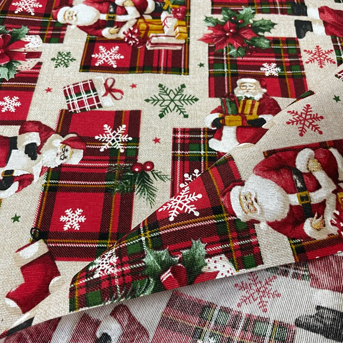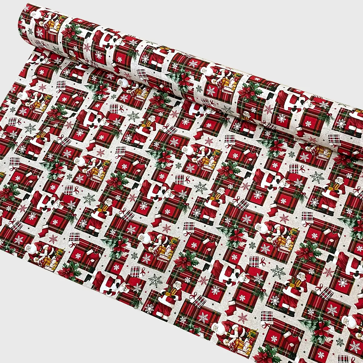 Transforma tu hogar en un santuario festivo creando manteles, cortinas y cojines únicos con la Tela Loneta Navideña «El Taller de Papá Noel». Esta loneta de 140 cm de ancho combina la durabilidad del 70 % algodón y 30 % poliéster con un estampado vibrante y detallado de Santa en su taller, lo que la hace perfecta para proyectos de decoración que requieren resistencia y cuerpo. Adquiere hoy mismo tu rollo de 30 metros.