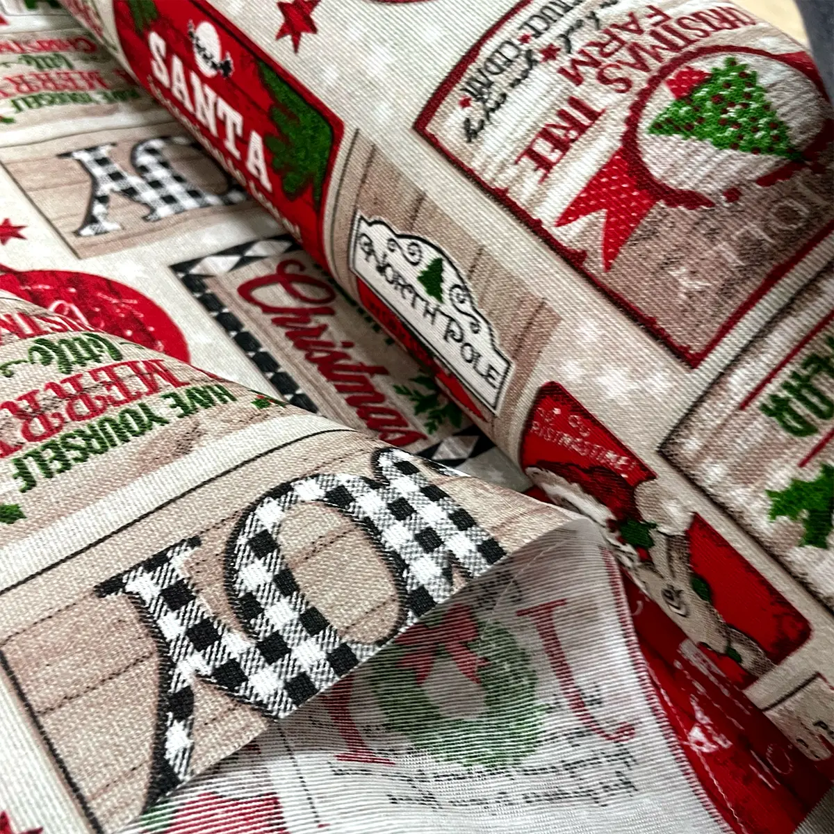 La Navidad es una época para recordar y celebrar los momentos más preciados, y nada lo evoca mejor que una postal antigua. La Tela Loneta Navideña «Postales de Diciembre» captura esa esencia vintage y nostálgica con un diseño único que simula sellos, matasellos y mensajes festivos, transportando tu decoración a una época de encanto atemporal.